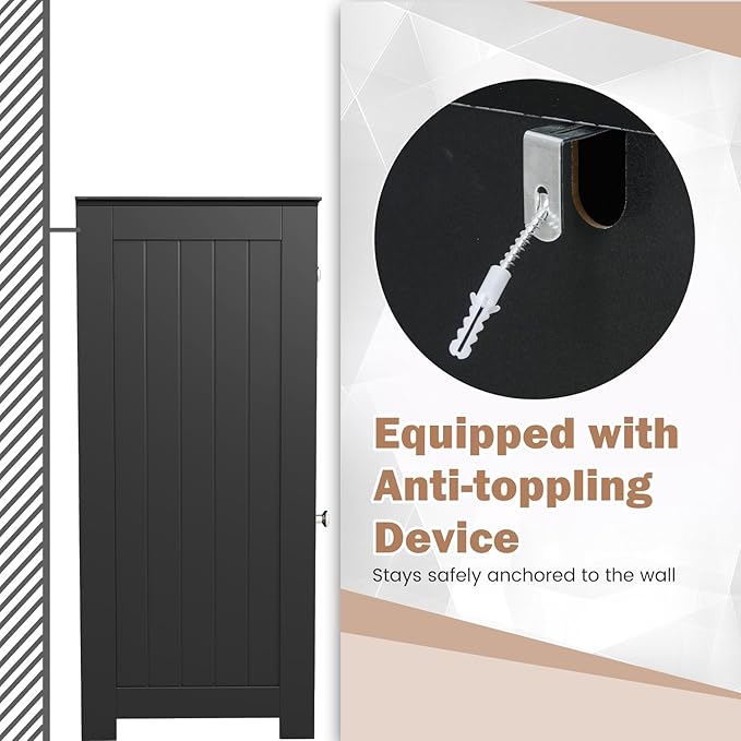 Tangkula Small Bathroom Cabinet for Small Spaces, Free-Standing Single Door Storage with Adjustable Shelf, Anti-Tipping Device, Smooth Drawer, Floor Cabinet for Bathroom & Living Room (Black)