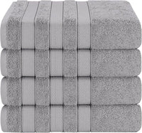 American Soft Linen Salem 100% Cotton Turkish 4 Piece Bath Towels for Bathroom, 600 GSM Soft Absorbent Quick Dry Bath Towel Set, Light Cool Grey