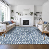 WITSHOCK 10x12 Area Rugs for Bedroom: Washable Non-Slip Large Thin Indoor Rug for Living Room Dining Room, Soft Geometric Low Pile Boho Print Carpet for Nursery Playroom Decor, Blue