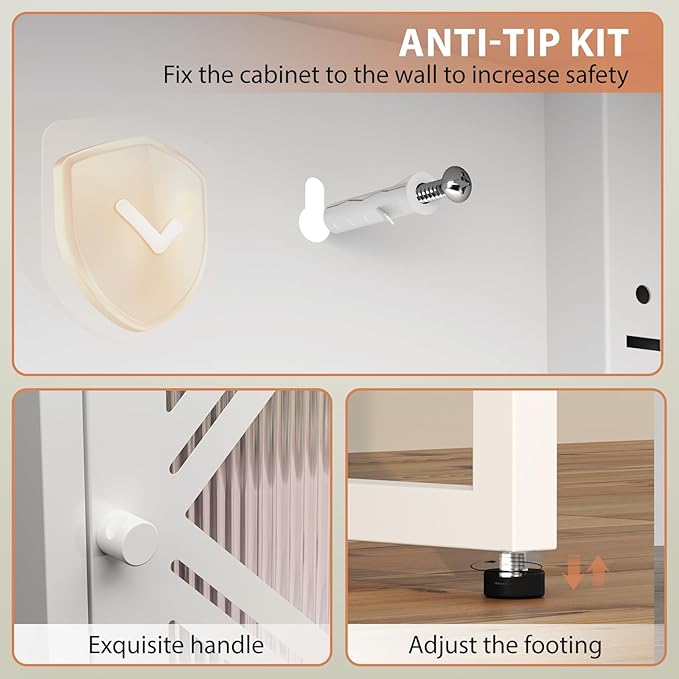 LEYNOT Small Bathroom Storage Cabinet 42.51“H Metal Bathroom Floor Cabinet with Adjustable Shelves for Pantry,Kitchen, Home Office, Living Room, Dinning Room (White+Transparent Door Panel)