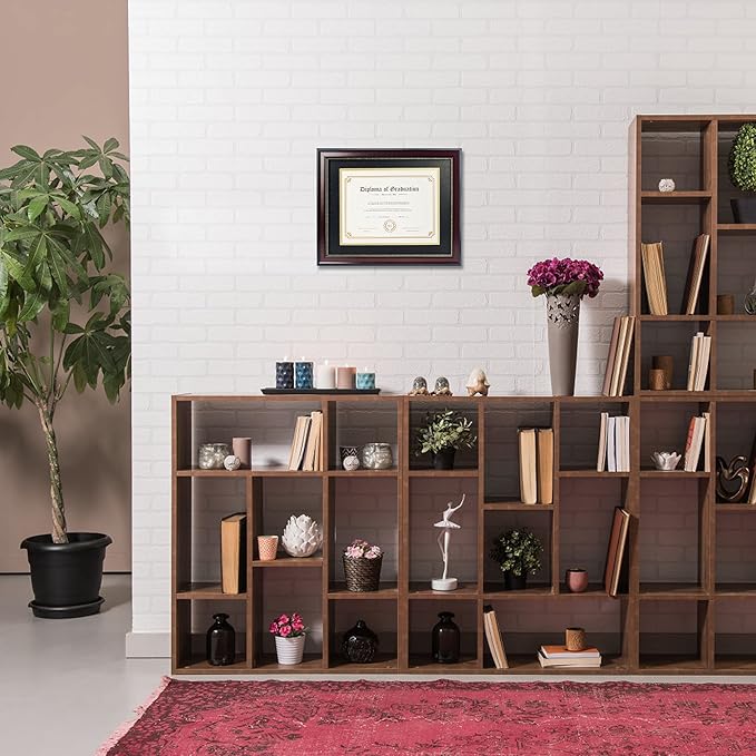 GraduatePro 8.5x11 Diploma Frame with Black Over Gold Mat or Display 11x14 Document Without Mat, CPA License Frame, UV Protection Acrylic, Mahogany with Gold Beads