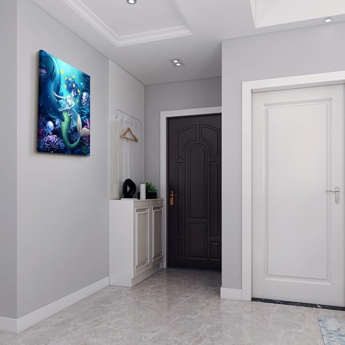 DZRWUBHS Canvas Wall Art for bathroom Wall Decor for living room Modern Family bedroom canvas art kitchen Mermaid Pictures Artwork Wall paintings Ready to hang Home Decorations 12" x 16" inch
