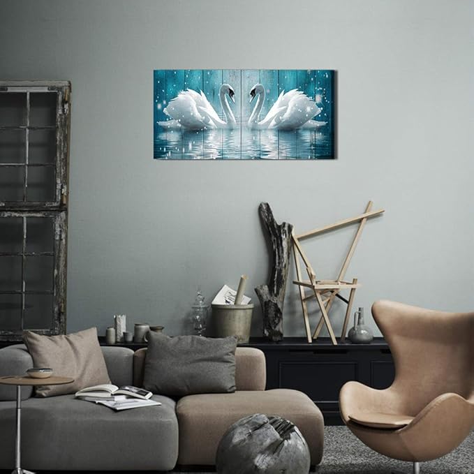 Wall Art for living room Canvas wall decorations for bathroom Modern Wall decor Family Bedroom Wall Pictures Two swans Artwork Kitchen office Home decoration Abstract painting