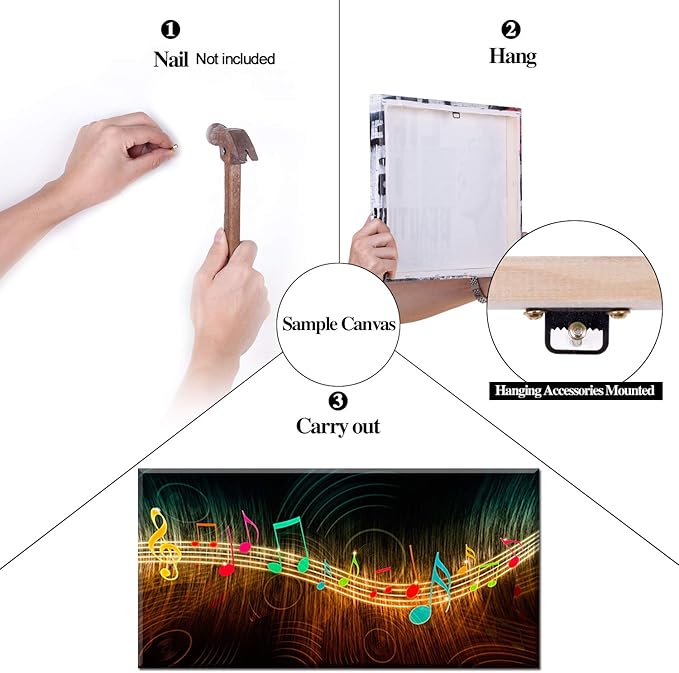 Music Wall Art for Bedroom Above Bed, PIY Modern Musical Note Canvas Prints, Beautiful Notes Beating on Staff Picture Decor (Waterproof, Bracket Mounted Ready to Hang, 24x48 Large)