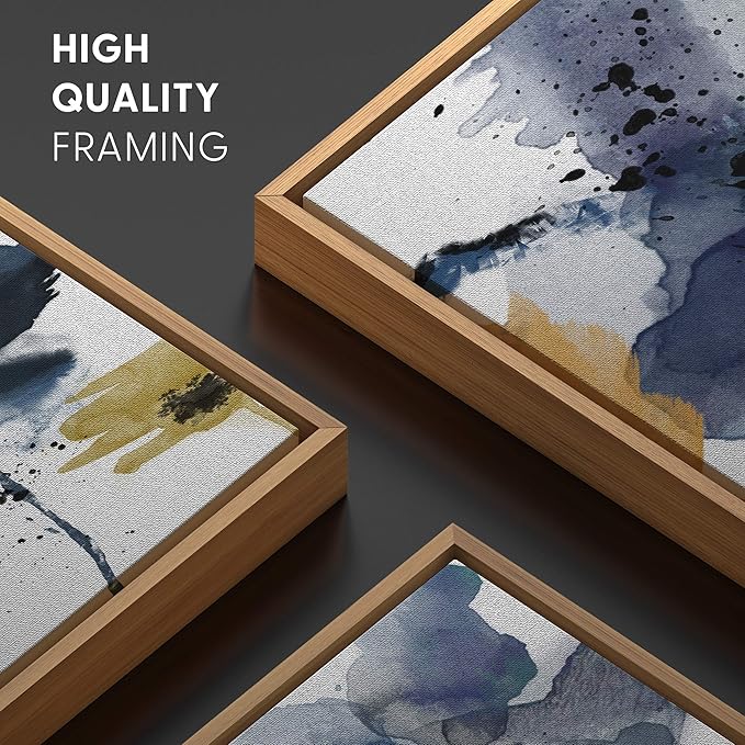SIGNWIN Framed Canvas Wall Art Blue and Orange Blossoms Botanical Flower Watercolor Modern Art Tropical Relax/Calm for Living Room, Bedroom, Office - 16"x24"x3 Natural