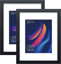 VCK 11x14 Picture Frame Set of 2 - Black, Textured Exclusive Wooden Frames with HD Glass, Display Photo 8x10 with Mat or 11x14 Without Mat
