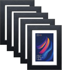 VCK 5x7 Picture Frame Black Set of 5, Textured Exclusive Wooden Photo Frames with HD Glass | Matted to 4x6 or 5x7 without Mat