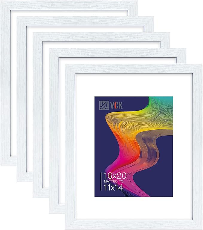VCK Picture Frame Display Picture Photo Frame with High Definition Real Glass Front Display Tabletop and Wall Mounting (White, 16x20-5 Pack)