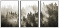 SIGNWIN Framed Canvas Print Wall Art Woodland Nursery Decor Set Duotone Blue Misty Pine Tree Forest Nature Modern Art Rustic Landscape Colorful for Living Room, Bedroom, Office - 24"x36"x3 White