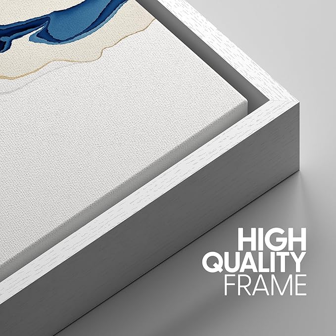 SIGNWIN 3 Piece Framed Canvas Wall Art Blue and Brown Watercolor Nature Wilderness Illustrations Abstract Traditional Relax/Calm Home Artwork Decoration for Living Room,Bedroom - 24"x36"x3 White