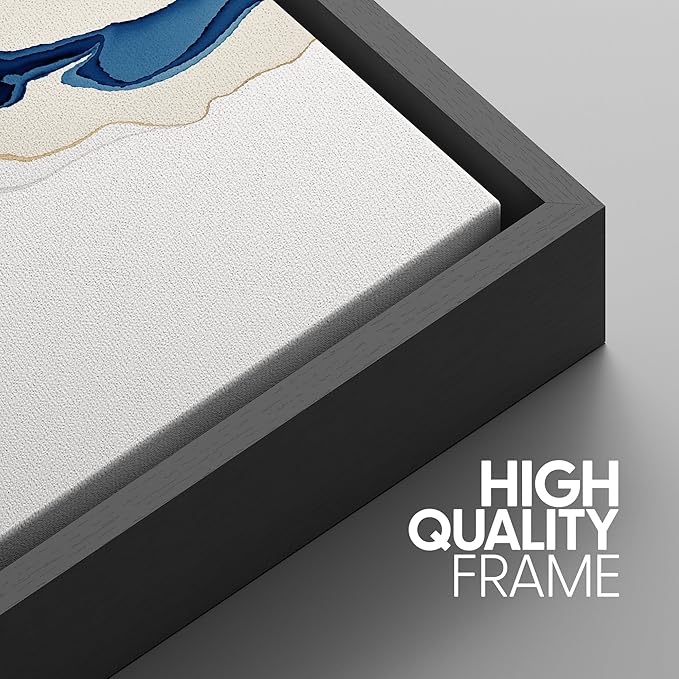 SIGNWIN 3 Piece Framed Canvas Wall Art Blue and Brown Watercolor Nature Wilderness Illustrations Abstract Traditional Relax/Calm Home Artwork Decoration for Living Room,Bedroom - 24"x36"x3 Black