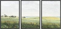 SIGNWIN Framed Canvas Print Wall Art Set Green Pasture Countryside Flower Field Nature Abstract Illustrations Modern Art Decorative Nordic Rustic for Living Room, Bedroom, Office - 24"x36"x3 Black