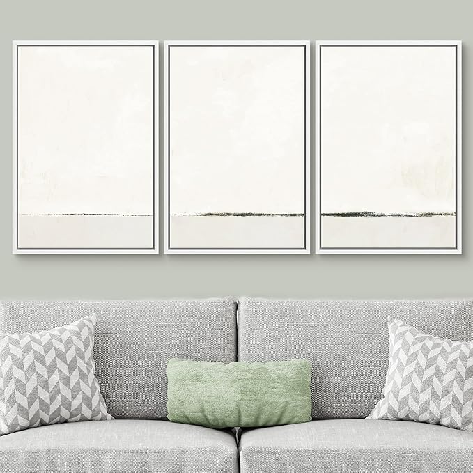 SIGNWIN Framed Canvas Print Wall Art Set Duotone Gray White Grunge Pastel Landscape Shapes Abstract Illustrations Modern Art Decorative Nordic Zen for Living Room, Bedroom, Office - 24"x36"x3 White