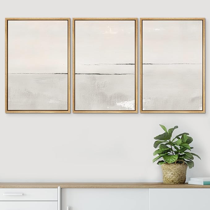 SIGNWIN Framed Canvas Print Wall Art Set Gray Duotone Pastel Watercolor Landscape Shapes Abstract Illustrations Modern Art Decorative Nordic Zen for Living Room, Bedroom, Office - 16"x24"x3 Natural