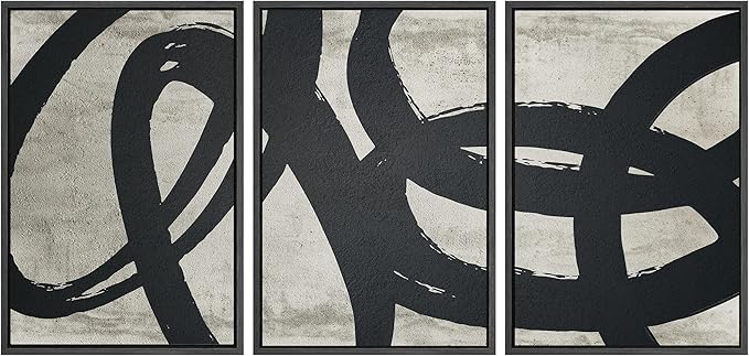 SIGNWIN Framed Canvas Print Wall Art Set Geometric Paint Stroke Spiral Rings Shapes Abstract Illustrations Modern Art Decorative Nordic Calm/Zen for Living Room, Bedroom, Office - 16"x24"x3 Black