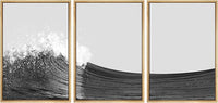 SIGNWIN 3 Piece Framed Canvas Wall Art Black and White Ocean Waves Nature Wilderness Illustrations Abstract Traditional Home Artwork Decoration for Living Room,Bedroom - 24"x36"x3 Natural