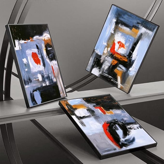 Canvas Wall Art Aesthetic Abstract Graffiti Large 32" X 24" Set of 3 Minimalist Wall Decor Modern Nature Art Posters Prints Frame Wall Art For Living Room Bedroom Bathroom Kitchen Office (Blue)