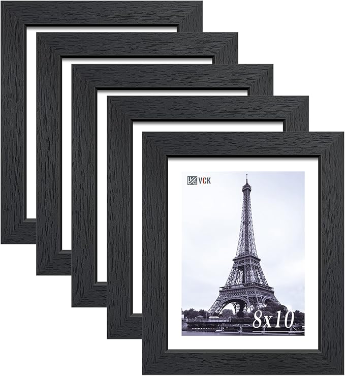 VCK 8x10 Solid Wood Picture Frame Set of 5,Textured Exclusive Black Picture Frames, Wall Hanging