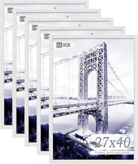 VCK 27x40 Poster Frames Set of 5, Exclusive Woodgrain White Picture Frame, Wall Mounting Hanging