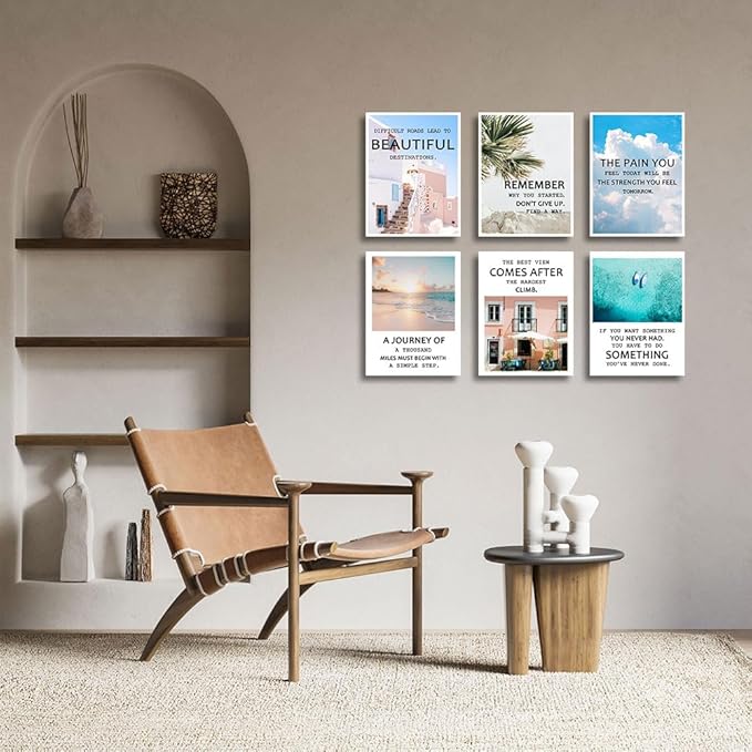 Inspirational Quotes Wall Art,Motivational Wall Art Decoration Painting, landscape Canvas Wall Art,Suitable for Library, Office,Living Room,Home Deco,Tabletop/Hanging,|6-pack 29 x 38 cm framed 5
