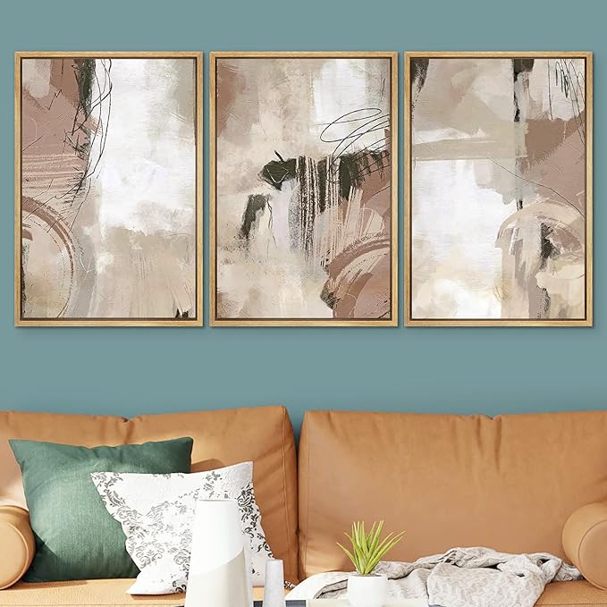 SIGNWIN Framed Canvas Print Wall Art Set Brown Pastel Watercolor Paint Strokes Shapes Abstract Illustrations Modern Art Decorative Nordic Calm for Living Room, Bedroom, Office - 16"x24"x3 Natural