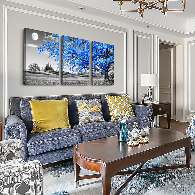 DZRWUBHS 3 Piece Canvas Wall Art For Living Room Modern Wall Decor For Office Black And White Blue Tree Wall Painting Scenery Wall Pictures Artwork For Bedroom Room Home Decor Prints Art 20" X 28"