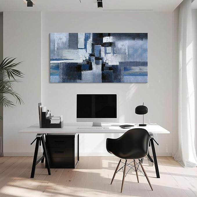 KLAKLA Large Abstracr Wall Art - Blue and Black Canvas Picture for Living Room Wall Decor - Bedroom Art Framed Artwork - Modern Wall Art - 24x48