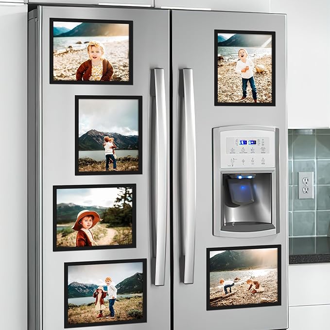 CRUGLA 8x10 Magnetic Picture Frames for Refrigerator, 4 Packs 8 By 10 Picture Frame with Self-Adhesive Backing Set for Glass Window Door Cubicle Tile Wall, Black