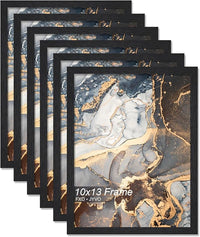 Engineered Wood 10x13 Picture Frame Set of 6, Black Frame for 10 x 13 Inch Picture Poster Photo, Light Weight 10 by 13 Frame with Wood-grain for Wall - 6 Pack/Black/10 x13