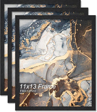 Engineered Wood 11x13 Picture Frame Set of 3, Black Frame for 11 x 13 Inch Picture Poster Photo, Light Weight 11 by 13 Frame with Wood-grain for Wall - 3 Pack/Black/11 x13