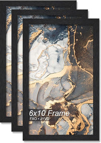 Engineered Wood 6x10 Picture Frame Set of 3, Black Frame for 6 x 10 Inch Picture Poster Photo, Light Weight 6 by 10 Frame with Wood-grain for Wall - 3 Pack/Black/6"x10"