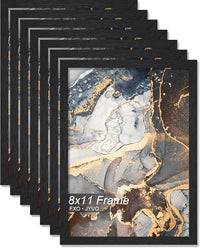 Engineered Wood 8x11 Picture Frame Set of 6, Black Frame for 8 x 11 Inch Picture Poster Photo, Light Weight 8 by 11 Frame with Wood-grain for Wall - 6 Pack/Black/8"x11"