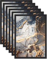 Engineered Wood 15x21 Picture Frame Set of 6, Black Frame for 15 x 21 Inch Picture Poster Photo, Light Weight 15 by 21 Frame with Wood-grain for Wall - 6 Pack/Black/15 x21
