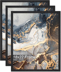 Engineered Wood 18x22 Picture Frame Set of 3, Black Frame for 18 x 22 Inch Picture Poster Photo, Light Weight 18 by 22 Frame with Wood-grain for Wall - 3 Pack/Black/18 x22