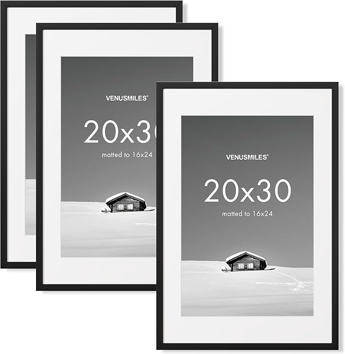20x30 inch Picture Frame, 20x30 Photo Frames with 16x24 Removable Mat - High Definition Plexiglass - Vertical and Horizontal Display - Wall Hanging Poster Frame - Black, 3 Pack