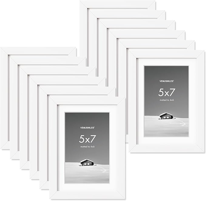 5x7 inch Picture Frame, 5x7 Photo Frames with 4x6 Removable Mat - High Definition Plexiglass - Vertical and Horizontal Display - Wall Hanging Frame - White, 12 Pack