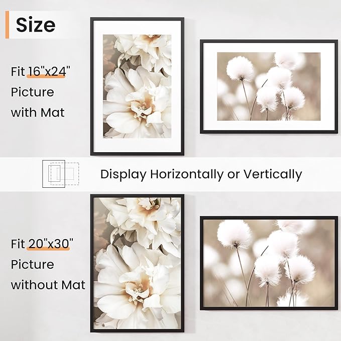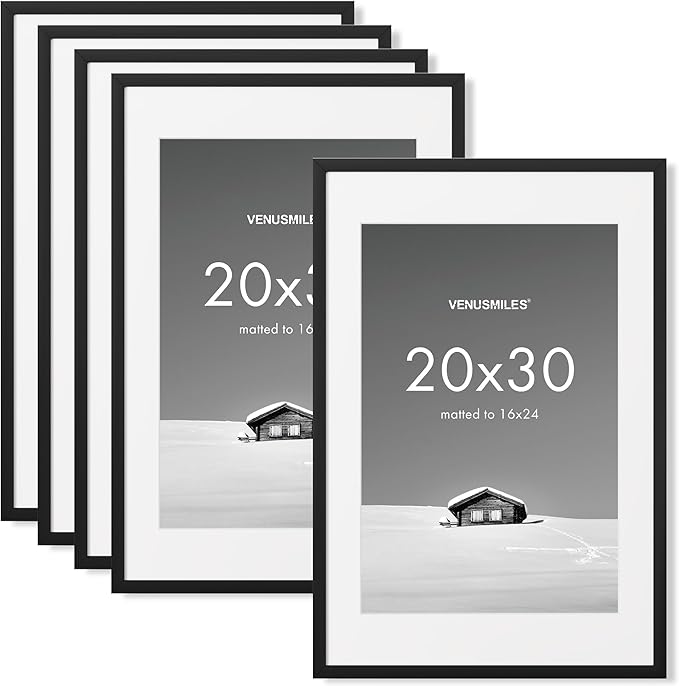 20x30 inch Picture Frame, 20x30 Photo Frames with 16x24 Removable Mat - High Definition Plexiglass - Vertical and Horizontal Display - Wall Hanging Poster Frame - Black, 5 Pack