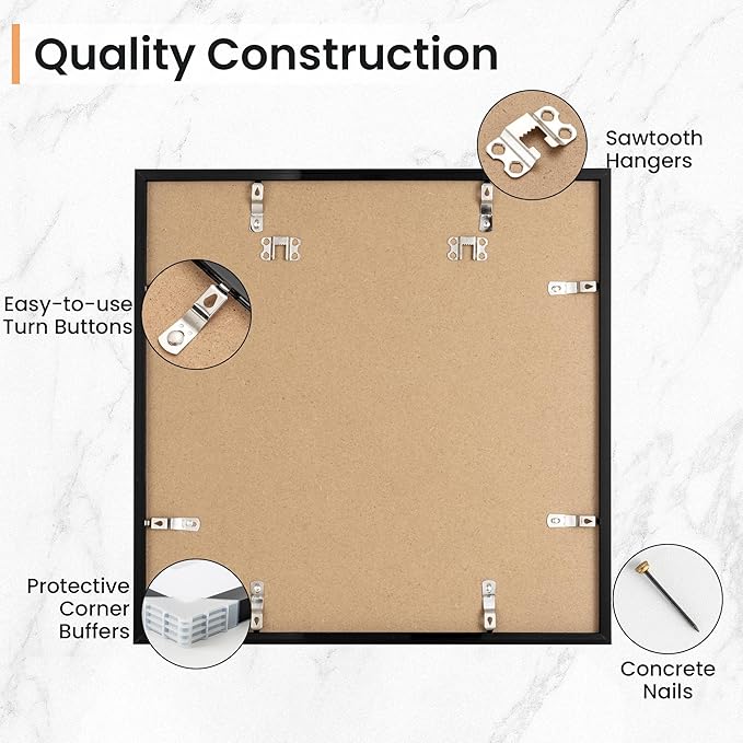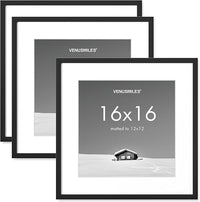 16x16 inch Picture Frame, 16x16 Photo Frames with 12x12 Removable Mat - High Definition Plexiglass - Vertical and Horizontal Display - Wall Hanging Frame - Black, 3 Pack