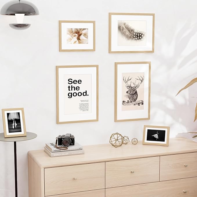 11x14 inch Picture Frame, 11x14 Photo Frames with 8x10 Removable Mat - High Definition Plexiglass - Vertical and Horizontal Display - Wall Hanging Frame - Oak Color, 12 Pack