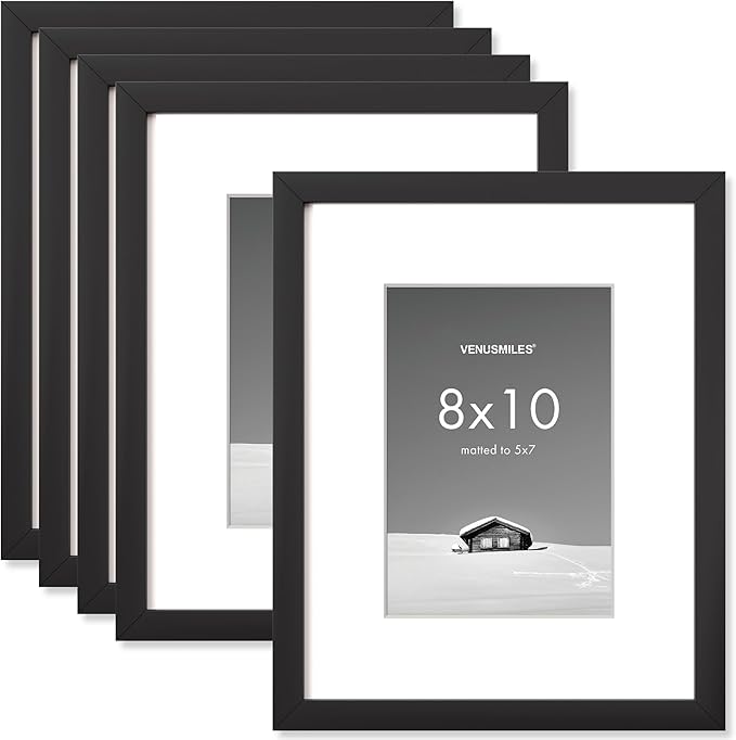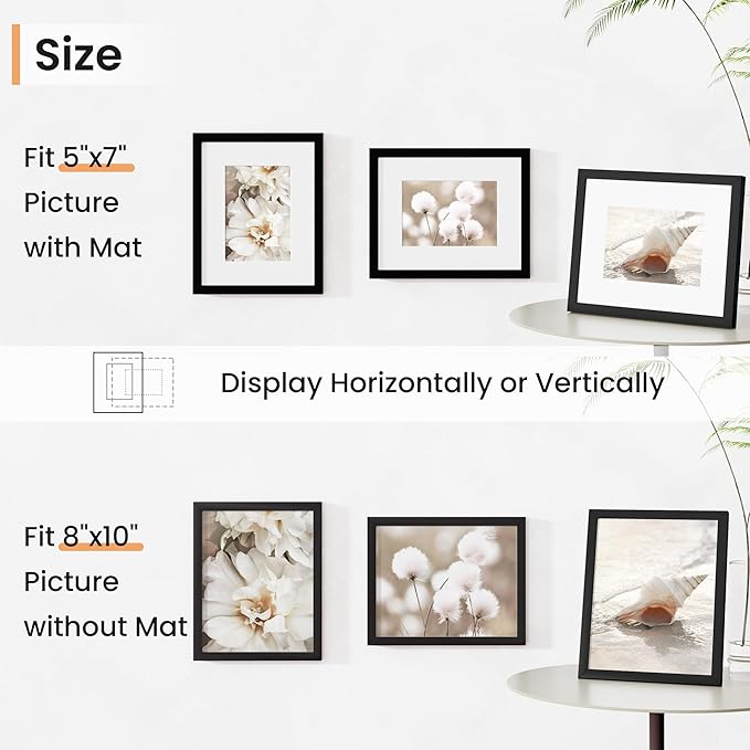 8x10 inch Picture Frame, 8x10 Photo Frames with 5x7 Removable Mat - High Definition Plexiglass - Vertical and Horizontal Display - Wall Hanging Frame - Black, 5 Pack