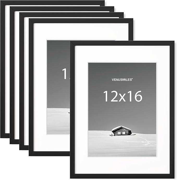 12x16 inch Picture Frame, 12x16 Photo Frames with Removable Mat - High Definition Plexiglass - Vertical and Horizontal Display - Wall Hanging Frame - Black, 5 Pack