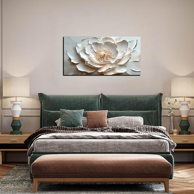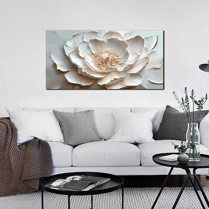 Flower Art Wall Decor for Living Room - White/Pink/Beige Canvas Wall Art for Office - Modern Wall Decor for Bedroom Women Size 20 x 40 Inch