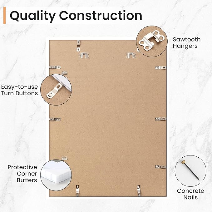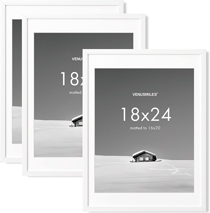 18x24 inch Picture Frame, 18x24 Photo Frames with 16x20 Removable Mat - High Definition Plexiglass - Vertical and Horizontal Display - Wall Hanging Poster Frame - White, 3 Pack