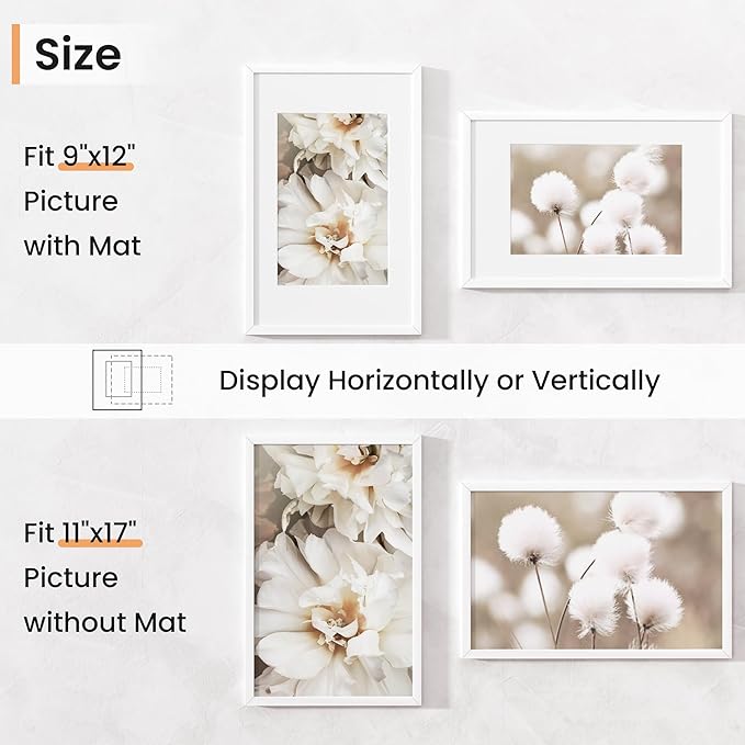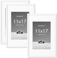 11x17 inch Picture Frame, 11x17 Photo Frames with 8x12 Removable Mat - High Definition Plexiglass - Vertical and Horizontal Display - Wall Hanging Frame - White, 3 Pack