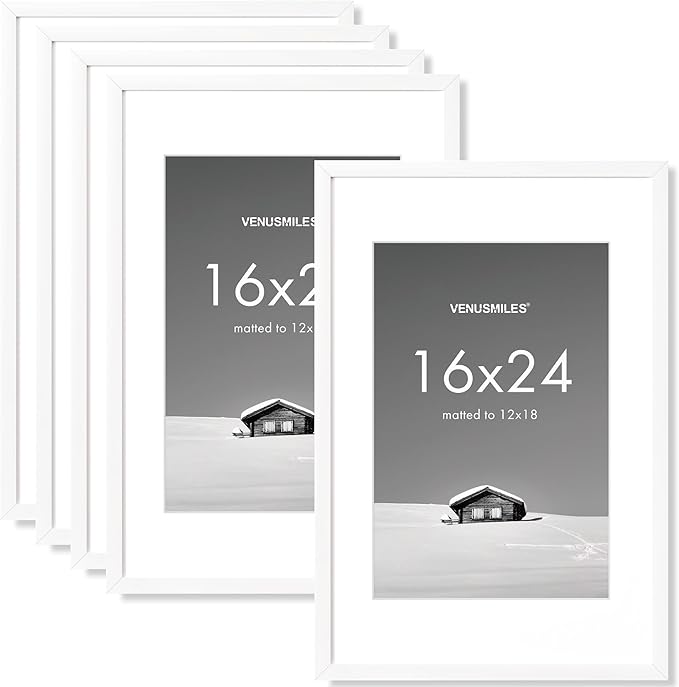 16x24 inch Picture Frame, 16x24 Photo Frames with 12x18 Removable Mat - High Definition Plexiglass - Vertical and Horizontal Display - Wall Hanging Poster Frame - White, 5 Pack