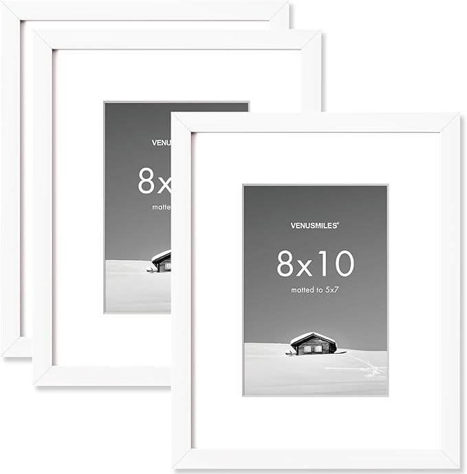 8x10 inch Picture Frame, 8x10 Photo Frames with 5x7 Removable Mat - High Definition Plexiglass - Vertical and Horizontal Display - Wall Hanging Frame - White, 3 Pack