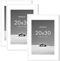20x30 inch Picture Frame, 20x30 Photo Frames with 16x24 Removable Mat - High Definition Plexiglass - Vertical and Horizontal Display - Wall Hanging Poster Frame - White, 3 Pack