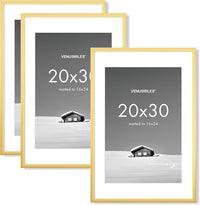 20x30 inch Picture Frame, 20x30 Photo Frames with 16x24 Removable Mat - High Definition Plexiglass - Vertical and Horizontal Display - Wall Hanging Poster Frame - Gold, 3 Pack