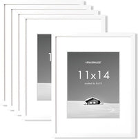 11x14 inch Picture Frame, 11x14 Photo Frames with 8x10 Removable Mat - High Definition Plexiglass - Vertical and Horizontal Display - Wall Hanging Frame - White, 5 Pack