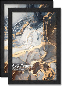 Engineered Wood 6x9 Picture Frame Set of 2, Black Frame for 6 x 9 Inch Picture Poster Photo, Light Weight 6 by 9 Frame with Wood-grain for Wall - 2 Pack/Black/6"x9"
